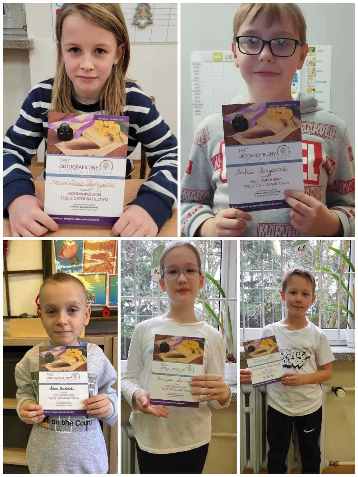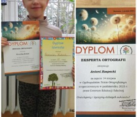 Nasze dzieci wzięły udział w Ogólnopolskim Konkursie Ortograficznym i osiągnęły znakomite wyniki, plasując się w pierwszej 40 spośród aż 525 uczestników z całej Polski Weronika Kubiak z klasy 3e za zajęcie 10 miejsca otrzymała tytuł “Mistrza Ortografii” a Antoni Rzepecki z klasy 3di za zajęcie 14 miejsca “Eksperta Ortografii”