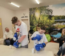 Podczas zajęć uczniowie mogli zobaczyć, jak wygląda codzienne funkcjonowanie osób z różnymi ograniczeniami. Proste czynności – zawiązanie butów, odkręcenie butelki wody, poruszanie się na wózku po klasie – nagle stały się wyzwaniem i pokazały, ile cierpliwości i determinacji wymaga każdy dzień.